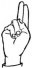 На ћирилици написано МИЛОМИРА УГРИНА састоји се из 14 слова [?]. Исписано ћириличном једноручном азбуком за глувонеме: